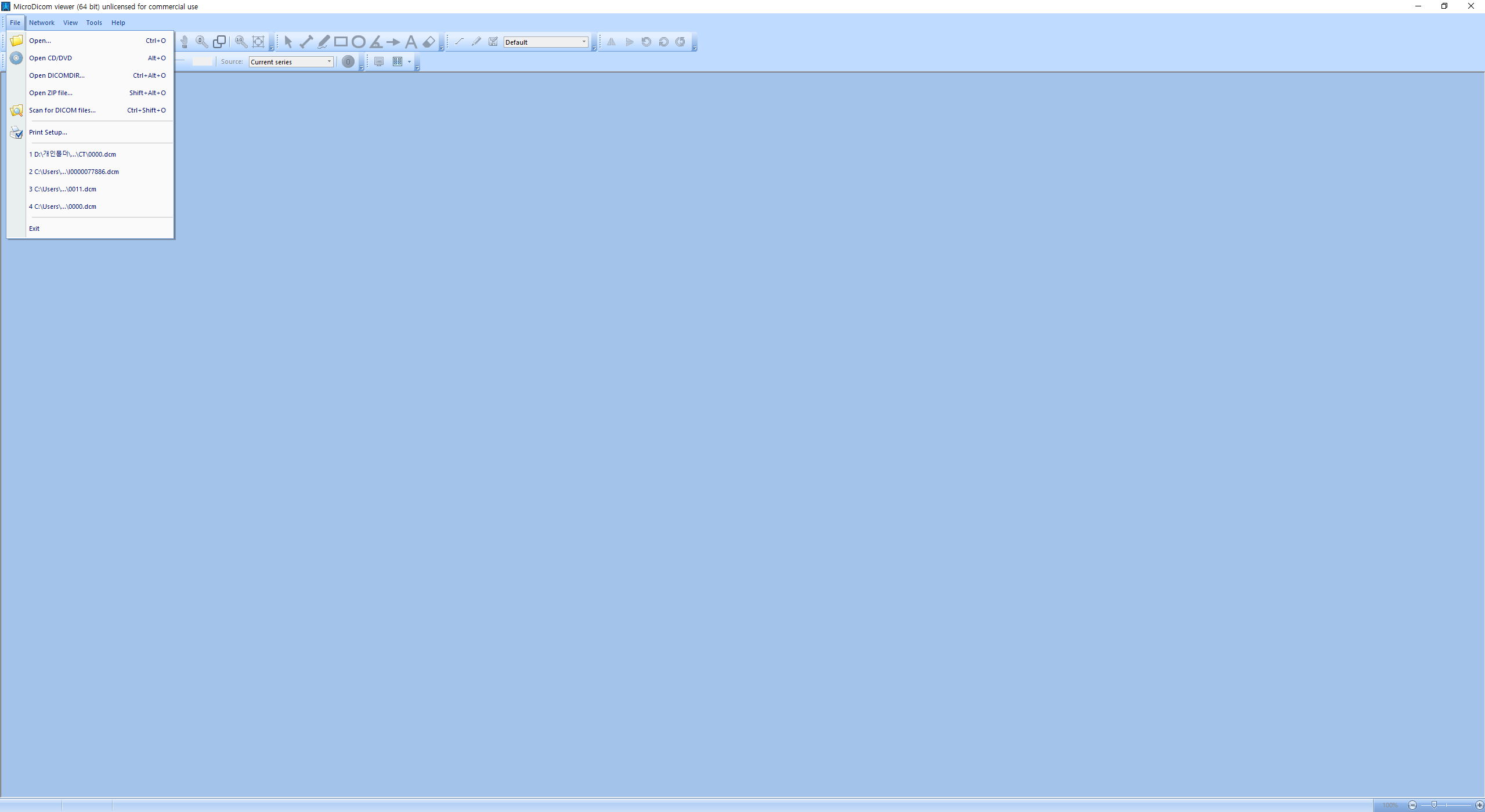 (파일 형식이 .dcm이 아닐 경우 보이지 않을 수도 있음.)