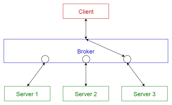 브로커(Broker)가 클라이언트와 서버 사이에 중개 역할을 합니다.