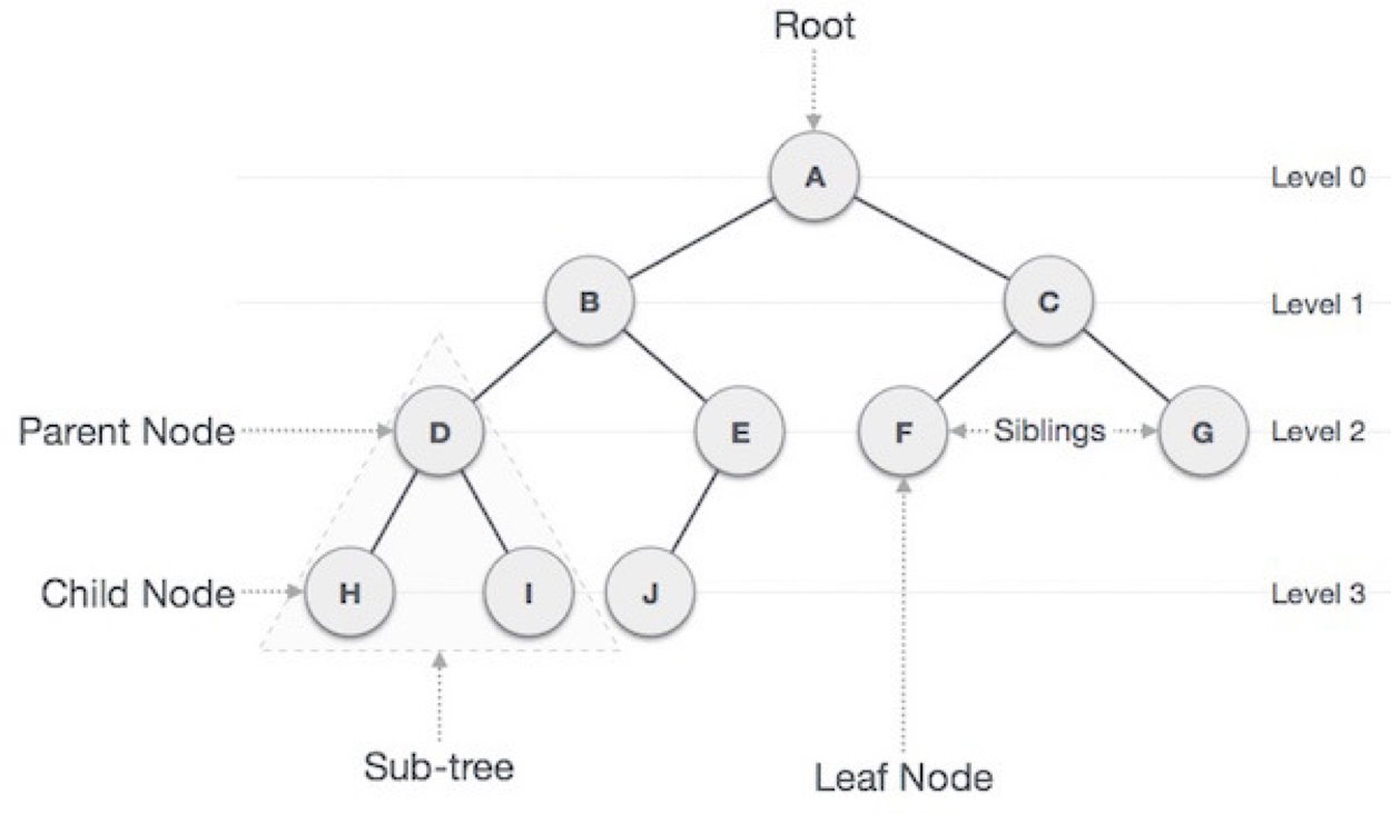 Depth는 Level을 의미하며 자식이 없는 노드들을 터미널 노드라고 부릅니다.